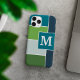 Grandes Stripes em azul e verde com o seu Monograma. Traga alguma felicidade na sua vida com estas cores fortes. Capa de telefone em cores modernas para ele e para ela.