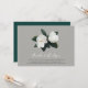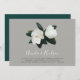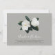 O convite para o casamento floral moderno apresenta um layout de texto simples e minimalista tocado por um par de flores brancas de magnólia graciosas e folhas verdes escamosas.