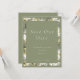 Este elegante casamento salva a data apresenta um belo pano de fundo aquoso de verde-lama em tons de oliva, sábio e verde-floresta. O design clássico é perfeito para que a família e os amigos saibam sobre o dia especial que se avizinha. Este design pode ser facilmente personalizado e personalizado para adicionar seus detalhes pessoais e seu talento a esta data de salvamento. Confira o resto da coleção Botânica Watercolor Greenery para coordenar convites e muito mais
