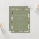 Este elegante casamento salva a data apresenta um belo pano de fundo aquoso de verde-lama em tons de oliva, sábio e verde-floresta. O design clássico é perfeito para que a família e os amigos saibam sobre o dia especial que se avizinha. Este design pode ser facilmente personalizado e personalizado para adicionar seus detalhes pessoais e seu talento a esta data de salvamento. Confira o resto da coleção Botânica Watercolor Greenery para coordenar convites e muito mais