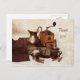Grãos de café e cartão de agradecimento de antigo