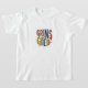 A design de camiseta ocular apresenta a frase "Grins for Dourado" em um gradiente multicolorido vibrante. Cada letra transita perfeitamente para o próximo, criando uma aparência dinâmica e alegre.