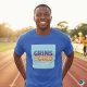 A design de camiseta ocular apresenta a frase "Grins for Dourado" em um gradiente multicolorido vibrante. Cada letra transita perfeitamente para o próximo, criando uma aparência dinâmica e alegre.