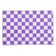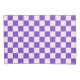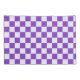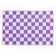 A purple and white checkerboard pattern with alternating squares, creating a balanced design. The vibrant colors give a playful, energetic feel.