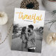 Envie um cartão com fotos de Ação de Graças na moda com "Obrigado" em uma fonte de script com letra manuscrita, estilo dourado de aquarela e espaços reservados para sua foto e texto personalizados.