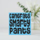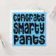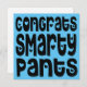Felicita alto e claro em estilo divertido o formando ou qualquer um que seja felicitado por esta grande tipografia ousada Felicita Smarty Pants em uma fonte escura e esplêndida negra com motivos cardíacos. Personalize facilmente a sua mensagem no sentido inverso. Você também pode alterar o plano de fundo azul para outra cor se desejar, bem como a fonte e a cor da saudação no verso, por meio da opção Personalizar Mais.