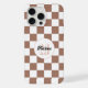 Os quadrados de cheques mocha castanho retro capas de iphone Monograma. Personalize com seu nome e inicial personalizados. Legal design de padrão quadrado geométrico verificado retroralmente.