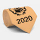 Esta gravata é poliéster/seda e é dourada e preta. Um design de livros escolares, lanterna e chama. "Graduação 2020" é um ditado para terminar.
