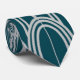 Esta gravata tem um design feito de cúpulas e linhas verticais em prata num campo de azul.
