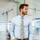 Esta gravata apresenta um padrão de arte de linha preta abstrato num fundo branco.