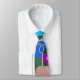 Esta design de gravata se parece com ornamentos em vermelho, verde, azul, rosa, ouro, prata e branco em uma árvore de Natal.