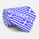 A Bandeira grega azul e branca ladrilhada diagonalmente. Cada bandeira na gravata tem a palavra "GRÉCIA" abaixo da bandeira em letras azuis.