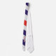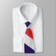 Esta gravata é decorada com vermelho diagonal, branco e azul, listras e um Polo de Barber.