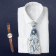 This men’s necktie features a refined botanical watercolor pattern with muted blue and blush florals. The soft floral design offers a unique blend of elegance and artistic charm.