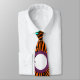 Esta gravata tem um design geométrico de círculos de diferentes cores com linhas a sair.