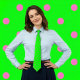 Bolinhas! Um dos padrões roupa clássicos que parece excelente no gravatas. Esta gravata de bolinhas apresenta pequenos pontos cor-de-rosa quente em verde-neon.
