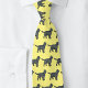 Espelhador Espanhol, silhueta de cão amarelo, azul e preto, linhas de abstrato em uma gravata amarela. A forma repetida de cão faz um presente de amante de cão excelente para qualquer pai de cão.
