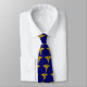 Esta gravata azul é decorada com imagens múltiplas de um caducério dourado.