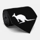 Kangaroo: silhueta branca de um canguru (virada para a esquerda) sobre fundo preto nesta gravata de qualidade - um design Stronsy coletável. Há outra versão deste virado para a direita.