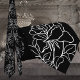 Uma gravata branca e negra moderna do pescoço, que apresenta um fundo preto sólido com um contorno branco de um rosa de jardim no galho com folhas.