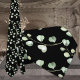 Uma simples, mas elegante gravata no pescoço do casamento, com imagens verdes de eucalipto em um padrão leve contra um fundo preto sólido.