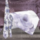 Uma gravata roxa, mauve, lavanda e branco do pescoço de casamento, com massa e púrpura pintadas com aquarelas, com verde de eucalipto cinza prateada contra um fundo branco puro e sólido.