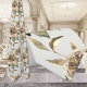 Uma gravata no pescoço do casamento com flores de cor d'água extremamente detalhadas de rosas, ranúnculos, peões, papoilas, dahlias, anêmonas e outros florais de casamento. Esta gravata apresenta uma grande floração verde e dourada com folhas de ouro e grandes florais.