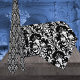 Uma gravata preta e branca do pescoço de casamento que apresenta uma cor damasco floral branca contra um fundo preto sólido.