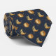 An elegant celestial pattern necktie featuring golden suns, crescent moons, and scattered stars set against a deep midnight blue background. Inspired by vintage astrology and mystical night skies, this seamless design blends luxury gold textures with cosmic symbolism.