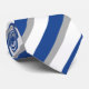 Saia e veja a classe ao mesmo tempo com esta gravata azul, cinza e branca de listras universitárias.