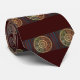 Gravata original com círculos de ouro sobre fundo artístico com faixas castanhas.