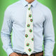 Esta gravata masculina é branca espalhada por círculos dimensionais verdes e vermelhos brilhantes com esqueletos de Natal divertidos vestindo chapéus de Papai Noel segurando ornamentos e cobertos em pontos verdes. O verso é verde estável.