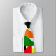 Esta gravata tem um design Bauhaus de uma colagem de triângulos em vermelho, amarelo, laranja, azul e verde.