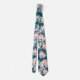 Gravata com Flores Rosas Rosa e Azul Marinho