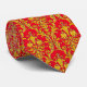 Gravata Damasco Floral Dourado Vermelho