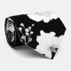 Uma gravata preta e branca do pescoço, com um fundo preto sólido com flores brancas de peonias e galhos verdes.