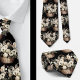 Uma gravata xadrez de padrão floral em aquarela preta e branca apresenta um design elegante e sofisticado com flores em várias formas e tamanhos, contrastadas com um fundo preto ou branco. Os motivos florais são intrincados, com as pétalas, folhas e caules renderizados em linhas limpas e sombreamento. O design varia de flores grandes e ousadas a flores menores e delicadas, criando um visual equilibrado e dinâmico.