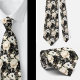 Uma gravata xadrez de padrão floral em aquarela preto e branco apresenta um design elegante e sofisticado com flores em várias formas e tamanhos, contrastadas com um fundo preto ou branco. Os motivos florais são intrincados, com as pétalas, folhas e caules renderizados em linhas limpas e sombreamento. O design varia de flores grandes e ousadas a flores menores e delicadas, criando uma aparência equilibrada e dinâmica.