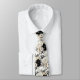 Uma gravata xadrez de padrão floral em aquarela preta e branca apresenta um design elegante e sofisticado com flores em várias formas e tamanhos, contrastadas com um fundo preto ou branco. Os motivos florais são intrincados, com as pétalas, folhas e caules renderizados em linhas limpas e sombreamento. O design varia de flores grandes e ousadas a flores menores e delicadas, criando uma aparência equilibrada e dinâmica.