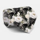 Uma gravata xadrez de padrão floral em aquarela preta e branca apresenta um design elegante e sofisticado com flores em várias formas e tamanhos, contrastadas com um fundo preto ou branco. Os motivos florais são intrincados, com as pétalas, folhas e caules renderizados em linhas limpas e sombreamento. O design varia de flores grandes e ousadas a flores menores e delicadas, criando uma aparência equilibrada e dinâmica.