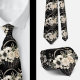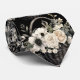 Uma gravata xadrez de padrão floral em aquarela preto e branco apresenta um design elegante e sofisticado com flores em várias formas e tamanhos, contrastadas com um fundo preto ou branco. Os motivos florais são intrincados, com as pétalas, folhas e caules renderizados em linhas limpas e sombreamento. O design varia de flores grandes e ousadas a flores menores e delicadas, criando uma aparência equilibrada e dinâmica.