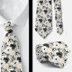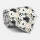 Uma gravata xadrez de padrão floral em aquarela preto e branco apresenta um design elegante e sofisticado com flores em várias formas e tamanhos, contrastadas com um fundo preto ou branco. Os motivos florais são intrincados, com as pétalas, folhas e caules renderizados em linhas limpas e sombreamento. O design varia de flores grandes e ousadas a flores menores e delicadas, criando uma aparência equilibrada e dinâmica.