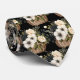 Uma gravata xadrez de padrão floral em aquarela preto e branco apresenta um design elegante e sofisticado com flores em várias formas e tamanhos, contrastadas com um fundo preto ou branco. Os motivos florais são intrincados, com as pétalas, folhas e caules renderizados em linhas limpas e sombreamento. O design varia de flores grandes e ousadas a flores menores e delicadas, criando uma aparência equilibrada e dinâmica.