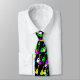 Gravata de violão. Amarre com ícones coloridos de violão num fundo preto.