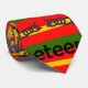 Esta gravata tem a décima design de Junta de listras vermelhas, verdes e amarelas com correntes de punho quebradas e a palavra "dezenove" repetindo-se por toda a design.