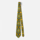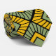 Esta gravata tem um design de arte de diamante com linhas diagonais e diamantes coloridos em tons de verde e amarelo.