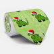 Dinossauro Verde num Chapéu Santa, com uma coroa de Natal à volta do pescoço