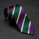 Esta gravata atraente apresenta listras diagonais acentuadas em roxo vibrante, verde esmeralda profundo e finas linhas douradas cintilantes. A combinação de cores ousadas cria um visual confiante, luxuoso e moderno que se destaca da melhor maneira. Perfeita para casamentos, eventos formais, cores de fraternidade ou escola, ou para adicionar personalidade ao seu traje de negócios. O rico roxo e verde com acentos dourados combinam lindamente com camisas e ternos brancos, pretos, azuis-marinho ou cinzas. Se você é o noivo, um padrinho ou simplesmente um homem que ama gravatas listradas clássicas com um toque fresco e enérgico, esta gravata listrada em roxo, verde e dourado traz estilo, energia e sofisticação.