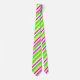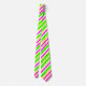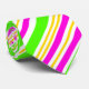 Essa gravata tem faixas brilhantes de diferentes larguras — verde limão, magenta, amarela e branca — organizadas em um padrão diagonal.