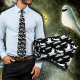 Fantasmas nas nuvens, significa gravata novidade para o Halloween ou apenas por diversão. Padrão "All-over" em branco-morto, cinza e preto. Vista ao escritório, ou à festa de escritório, na hora assustadora do ano.